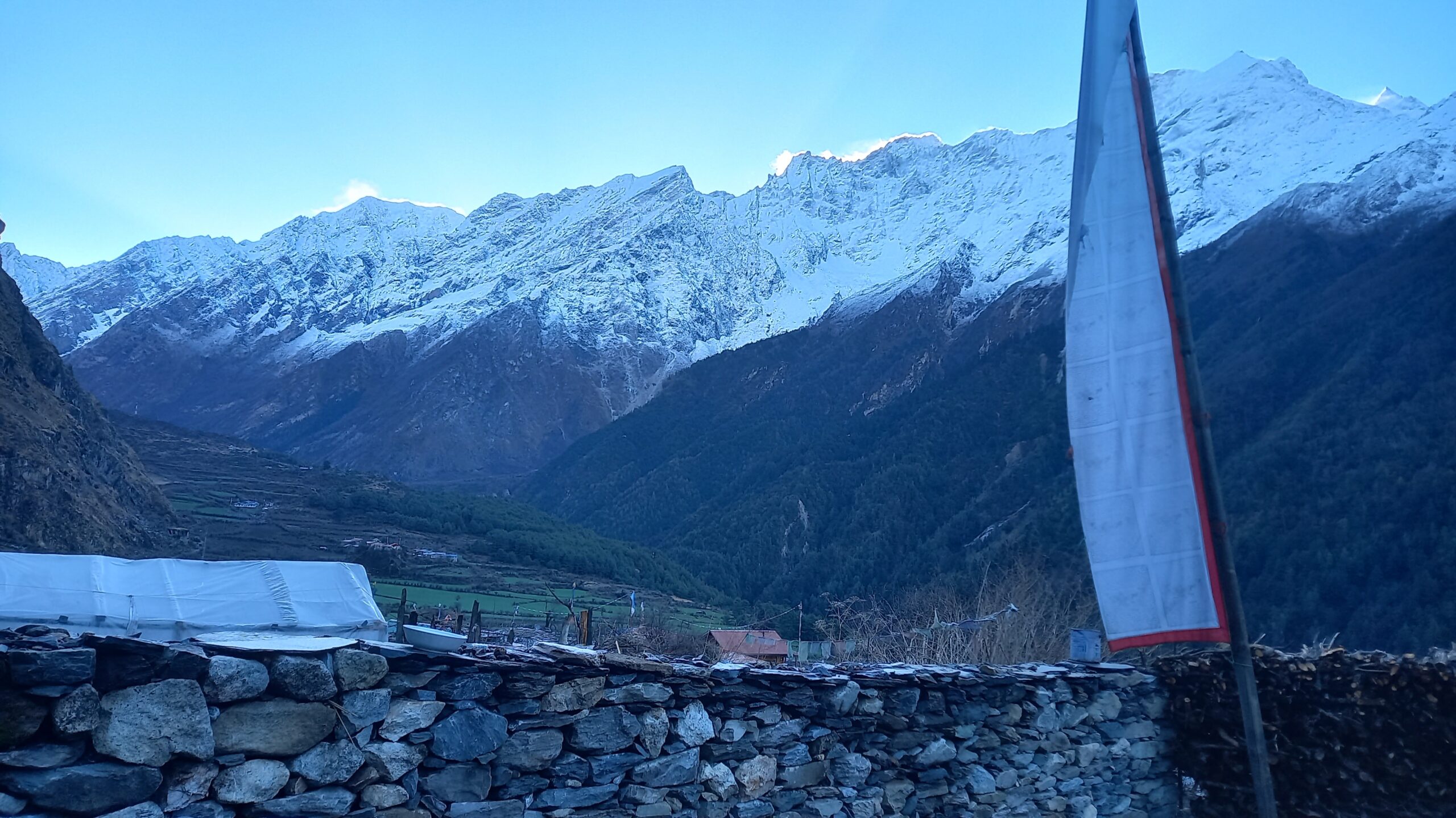 Today, you will take a day hike to Mu Gumba, which is located near the Nepal-Tibet border. If anyone wishes to spend the night at Mu Gumba, they must arrange lodging and meals at the monastery, as there are no lodges in the area. On the way to Mu Gumba, you’ll feel surrounded by stunning mountain and hillside scenery. The trail, adorned with Mani walls, adds a unique element to your journey. From Mu Gumba, enjoy the fantastic view of the Nile Valley with the Ganesh Himal range in the background. After having some tea or lunch and taking time to explore, you will descend back to Nile.