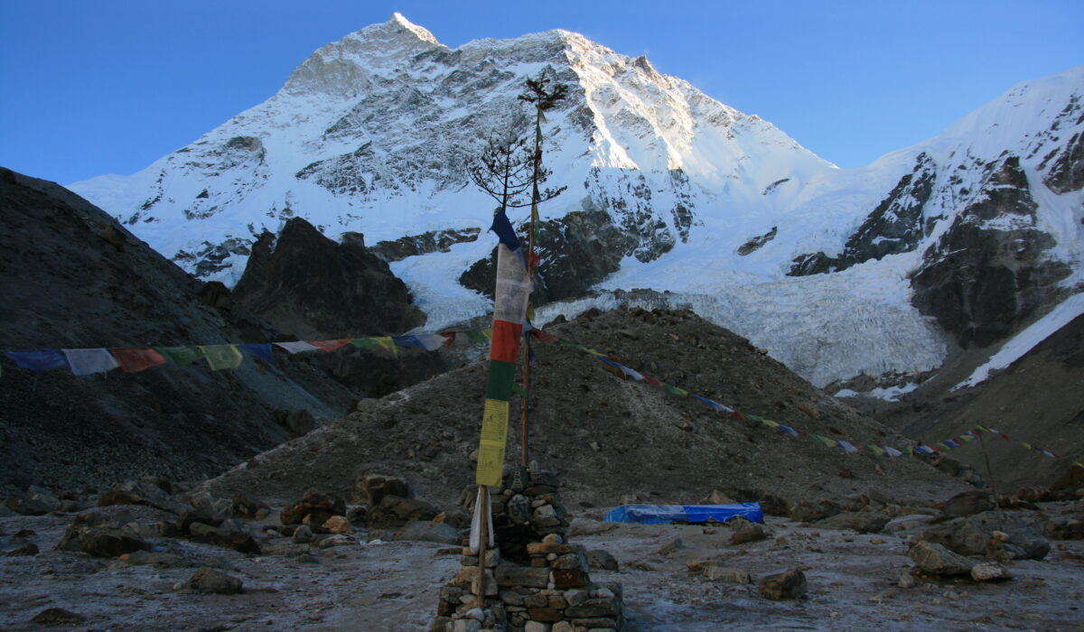 We make an early start for the crossing of the challenging pass Sherpani Col. Following the trail by the side of the glacier we climb towards the prayer flags that requires a fixed rope and hand lines to reach the top of the Sherpani Col. From there we shall start to descend down to West Barun Glacier. After crossing the glacier we head towards our camping site at Baruntse Base Camp. Stay overnight Baruntse Base Camp.