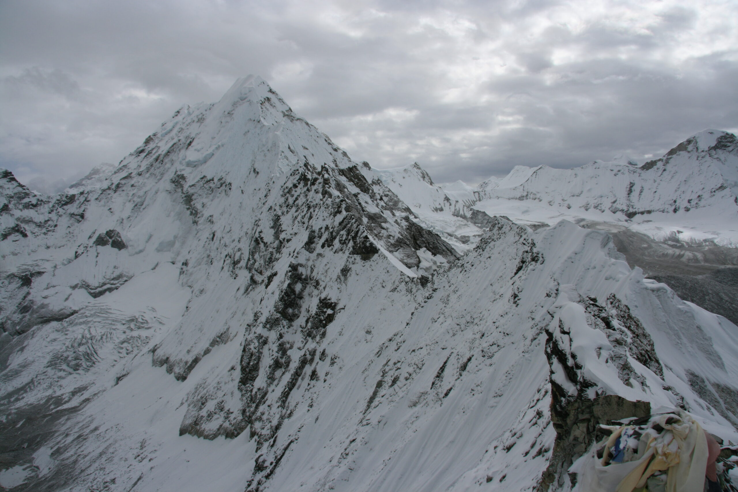 We make an early start for the crossing of the challenging pass Sherpani Col. Following the trail by the side of the glacier we climb towards the prayer flags that requires a fixed rope and hand lines to reach the top of the Sherpani Col. From there we shall start to descend down to West Barun Glacier. After crossing the glacier we head towards our camping site at Baruntse Base Camp. Stay overnight Baruntse Base Camp.
